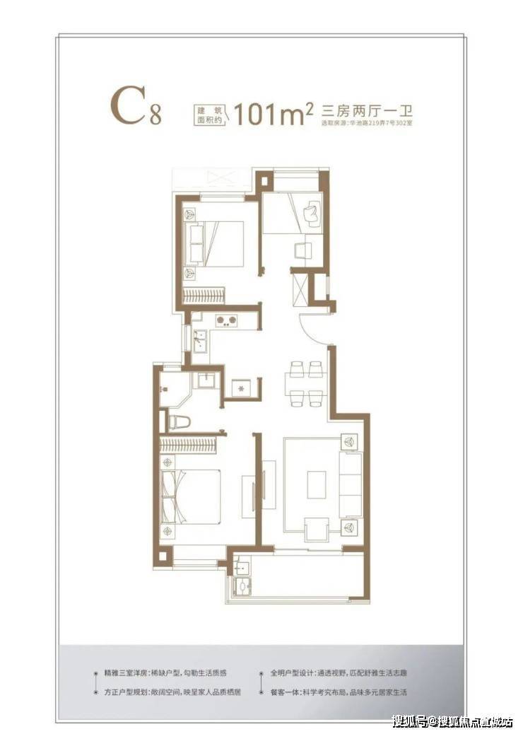 高层产品,包括建面约103-106平3房2厅2卫户型,几个主力户型做的非常不错,迎合了不同需求的购房群体。
