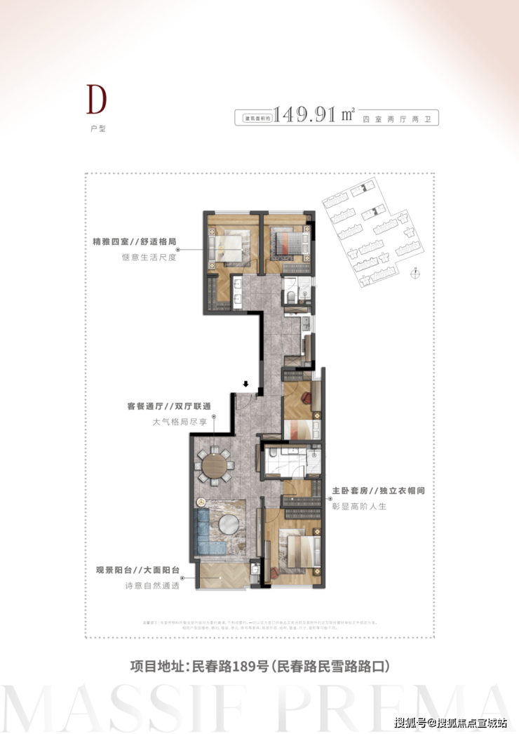 C户型 | 建面约149-161㎡ 四室两厅两卫