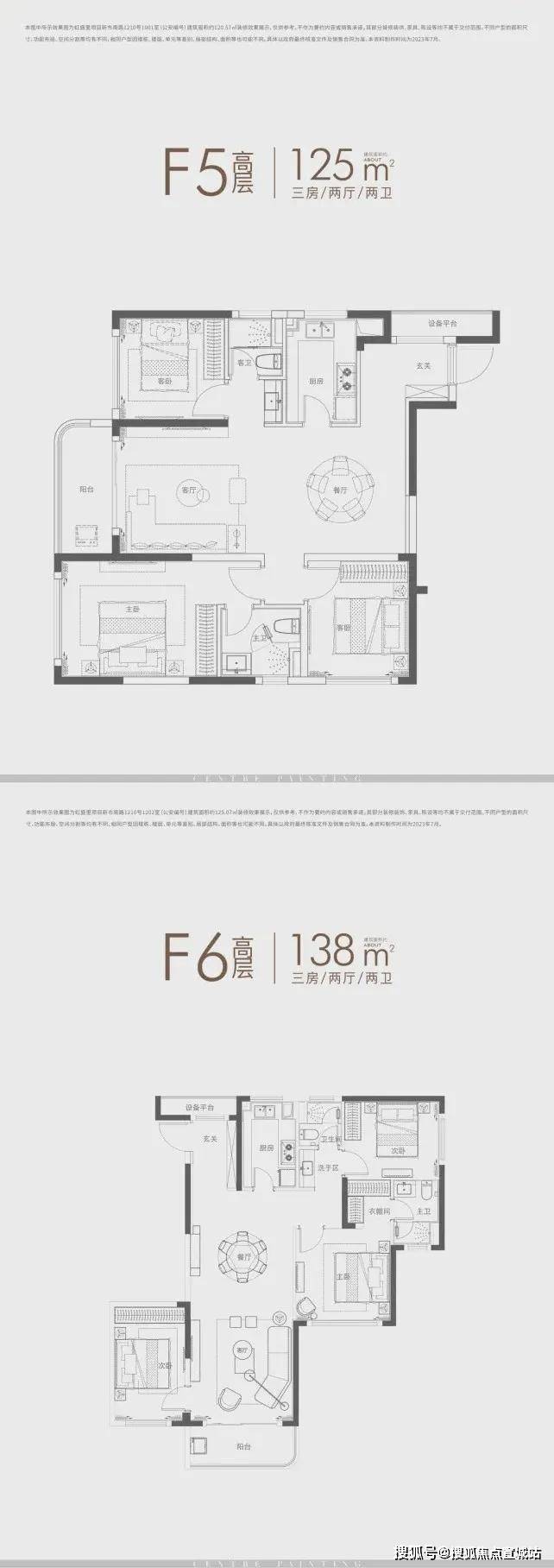 ①、建面约120㎡3房:
