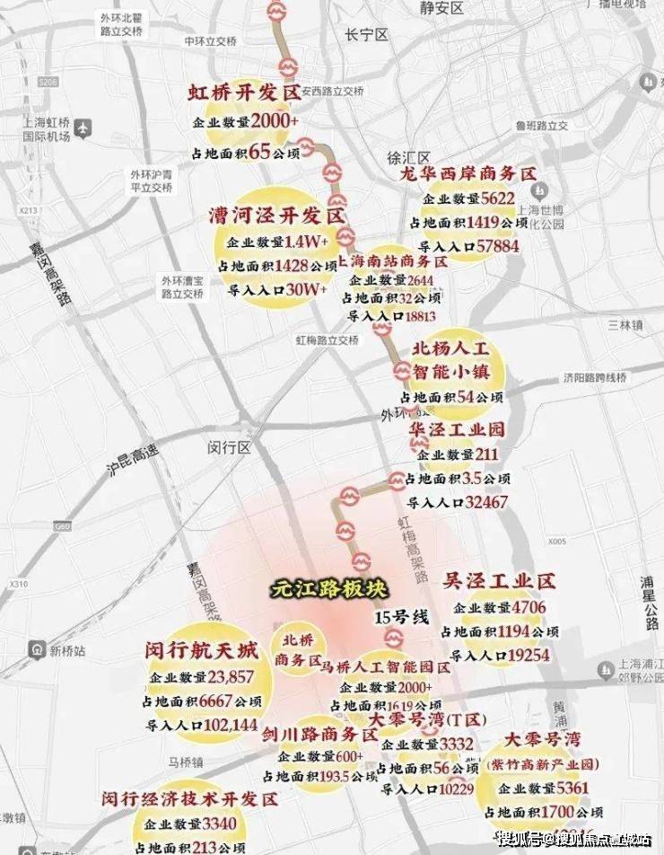 同时,还能依托15号线这条上海科创产业的超级动脉,一路贯穿虹桥开发区、闵行经开区、大零号湾等重要产业集群,直接把沿线14个产业园区70万+产业人口“一网打尽”!
