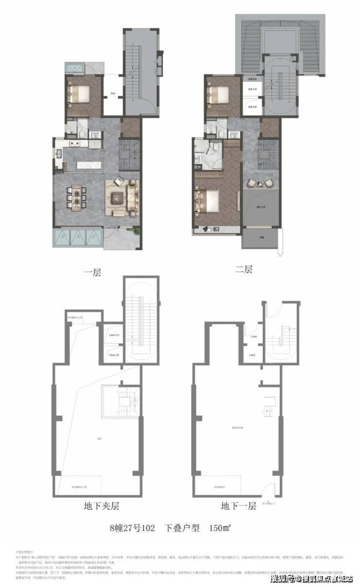 项目叠墅包含建面约141㎡上叠和建面约150㎡下叠.