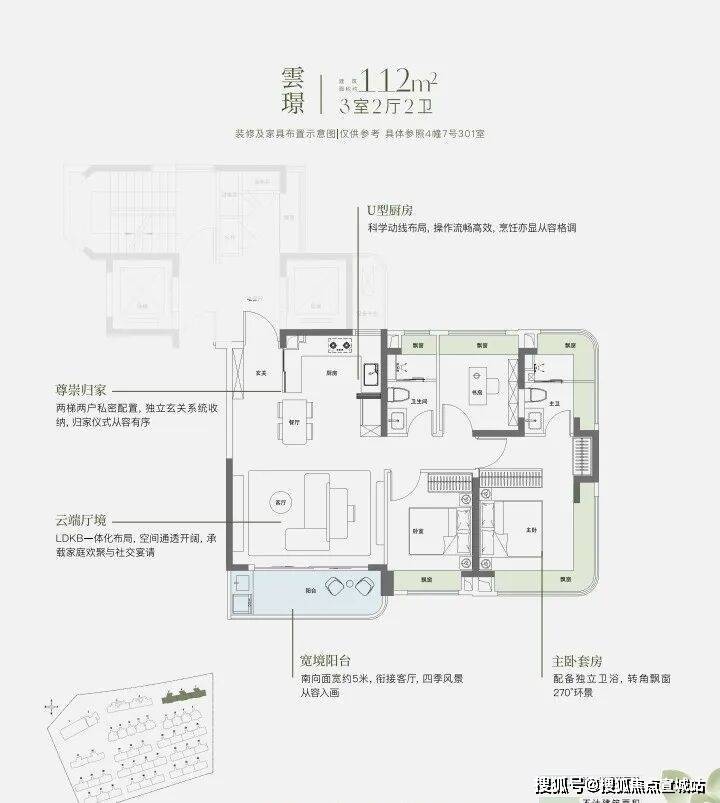 项目首开建面约112㎡3房(高层),该户型得房率86%,一次性全开,错过再无