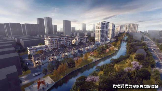而项目整体建筑布局随河蜿蜒,高低错落的建筑形态也契合了江南水乡的水韵特色。