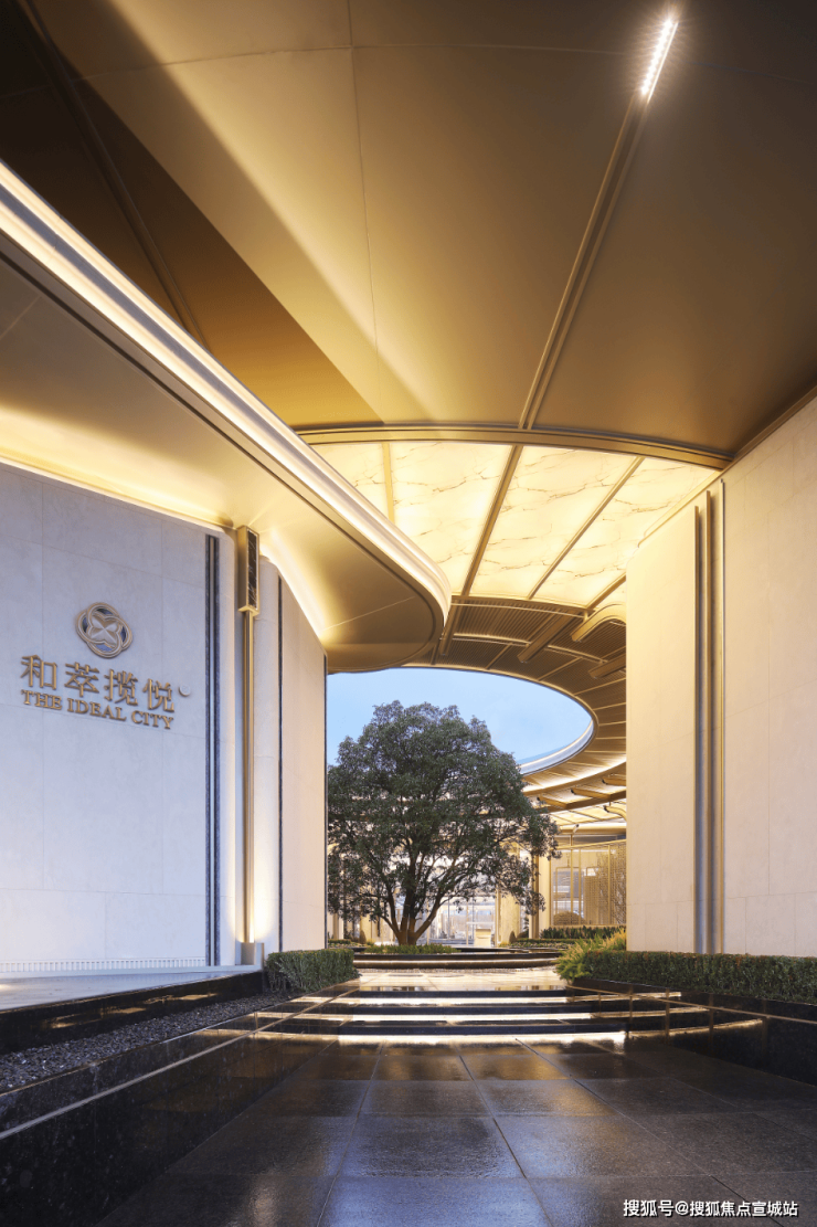 门头的屋檐也不再是平铺直叙,而是做了三重檐,就像花开时的花瓣一样次第绽放,标志着和萃揽悦园的“理想之花”。