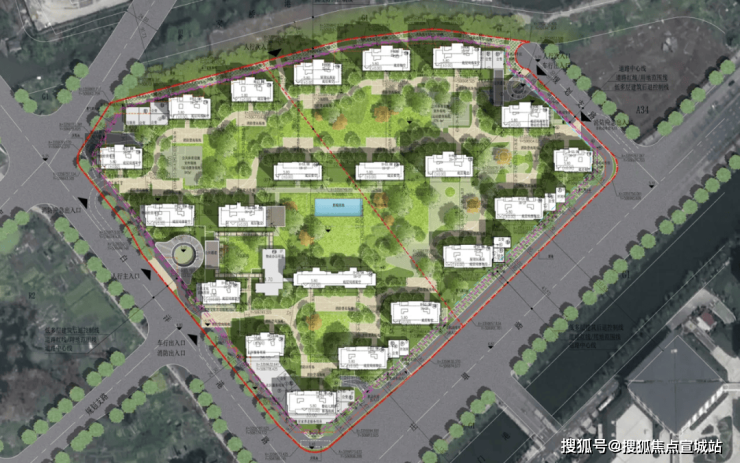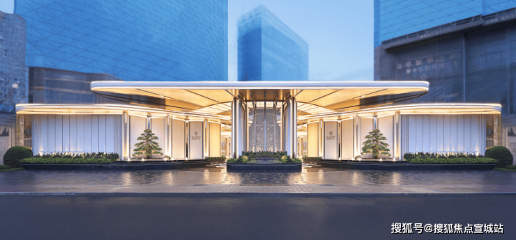 作为和萃揽悦园的关键归家场景之一,搭配波光粼粼的镜面水景和松柏点缀,有一种“明月松间照,清泉石上流”的人文意境了。