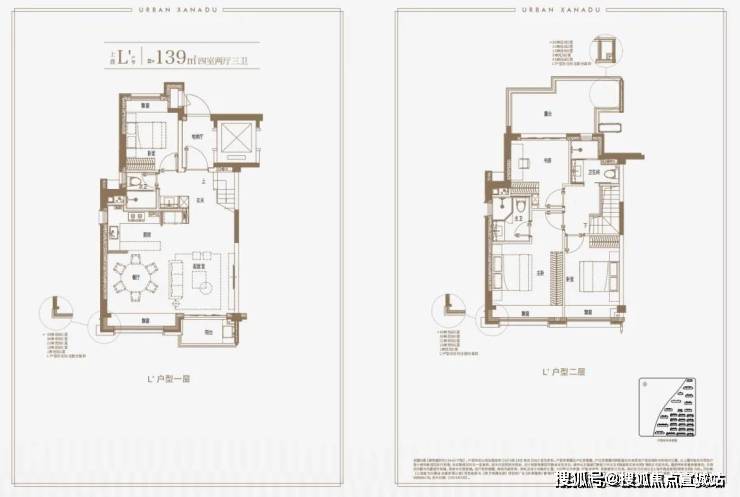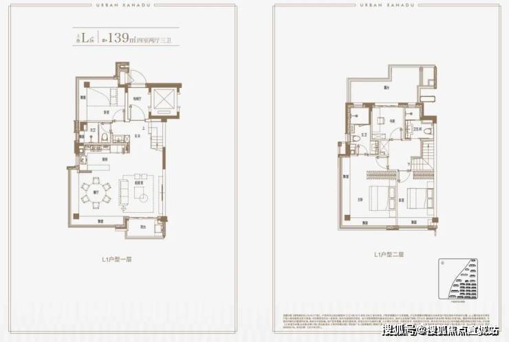 建面约139㎡上叠户型,三层是会客区,四层是居住区,阳台+露台+多个飘窗设计,附加空间非常大,在别墅类产品中实属罕见!