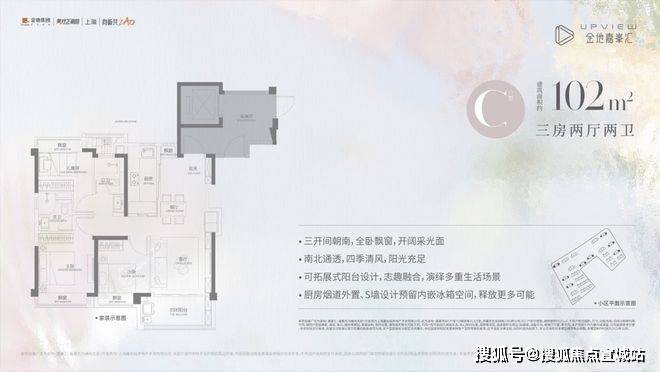 以及我们的网红爆款,建面约102㎡(C户型)三房两厅两卫,不仅保留了其小户型所有的优势,更增强了空间感和舒适度!