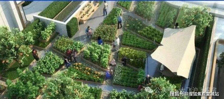 屋顶菜园:城市田园梦,人与自然的乌托邦(此处指配套用房屋顶)。一块小菜地,可以唤起人们对土地和自然的亲近感,也能让一家人在照料蔬果的时光里,创造美好、独特的共同回忆。