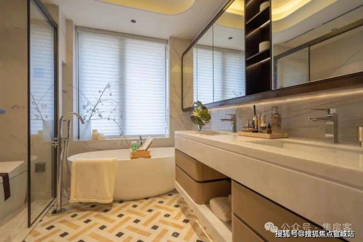 博世五件套、其中冰箱是博世8系最高顶配,全嵌入式、全进口的。还有方太万元侧吸油烟机,爆炒辣椒也不用担心跑烟。空调、厨余处理器、净水器等,也都包在交付标准内;卫生间:镜柜配置美妆冰箱,守护主人高端的护肤美容产品;