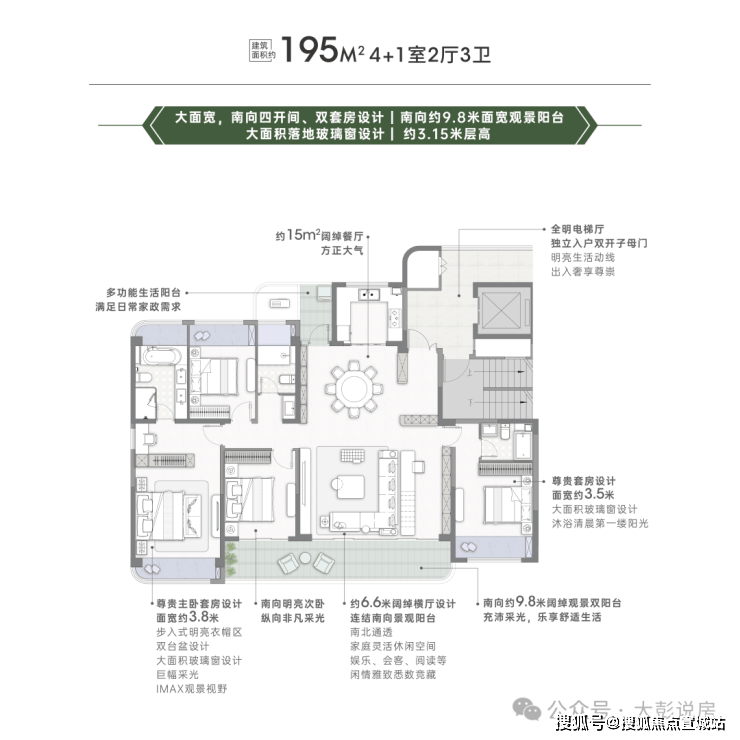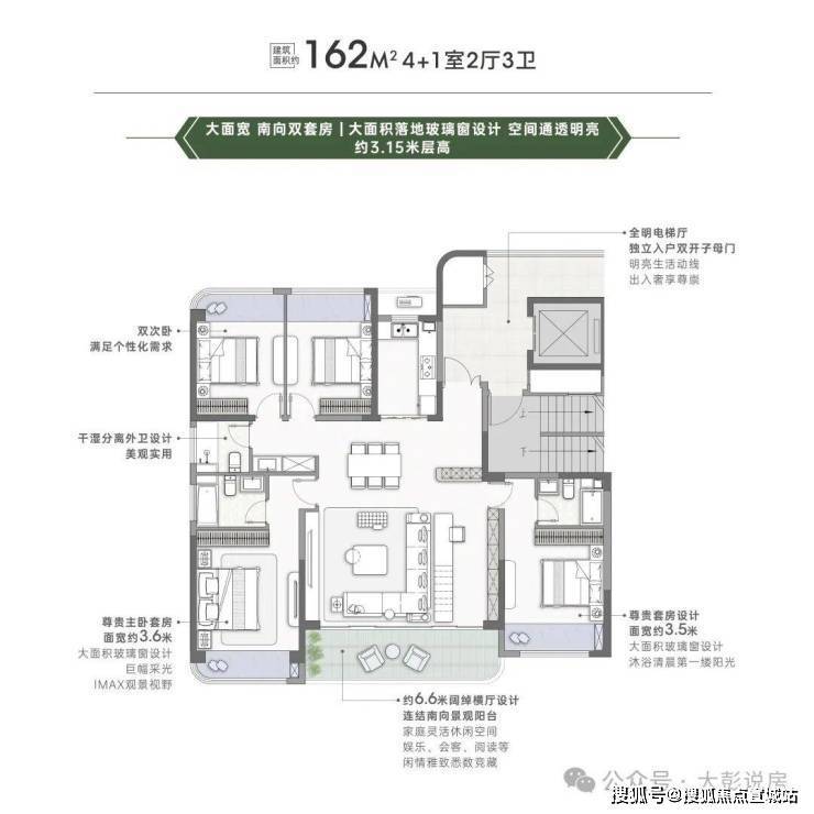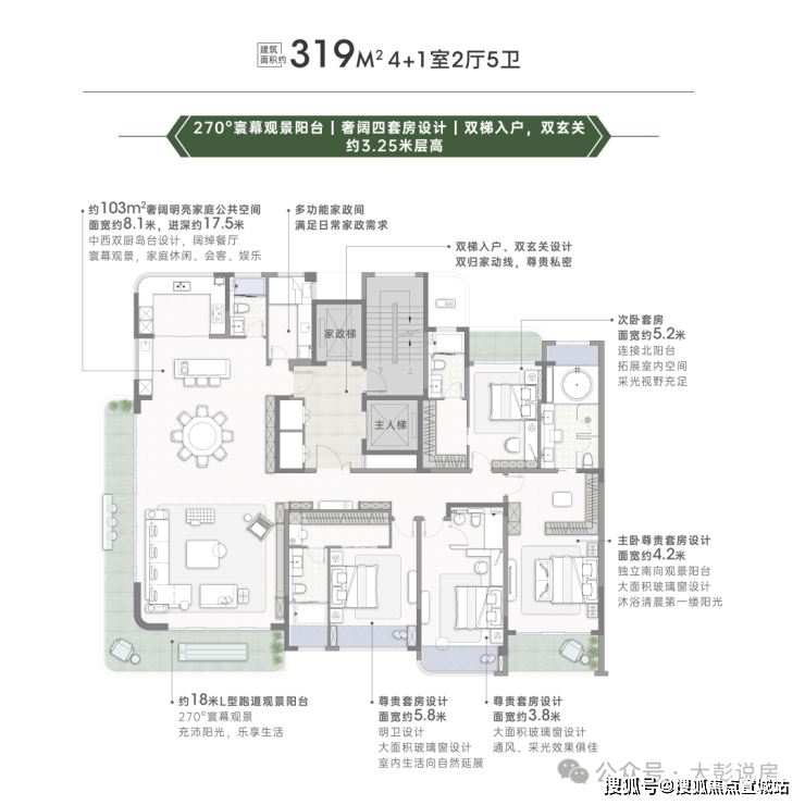 户型面积:大平层面积段约为 162-319㎡,包括 162㎡、195㎡、221㎡、251㎡、319㎡等户型