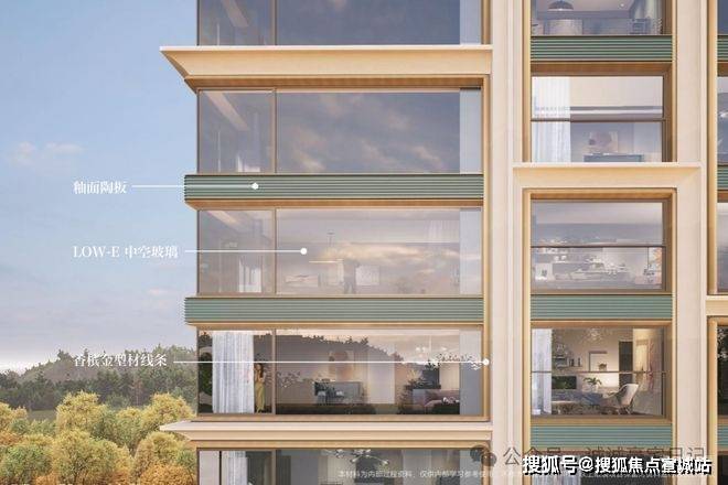 实现上海转角连续约12米无柱全景舱户型,部分户型270°转角飘窗以及全景舱户型的落地,贯彻「公园观礼台」主线,将景观充分揽入室内。