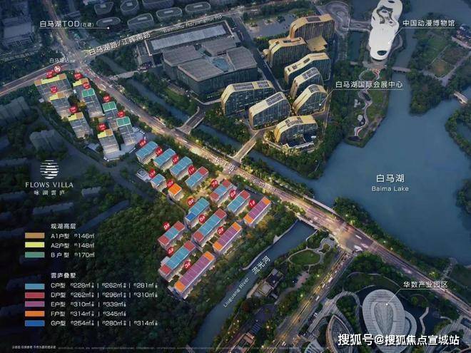 南地块(叠墅区)占地面积约3.2万㎡,建筑面积约5.16万㎡,容积率1.6,面积段建面约228㎡-345㎡,规划套数180套。