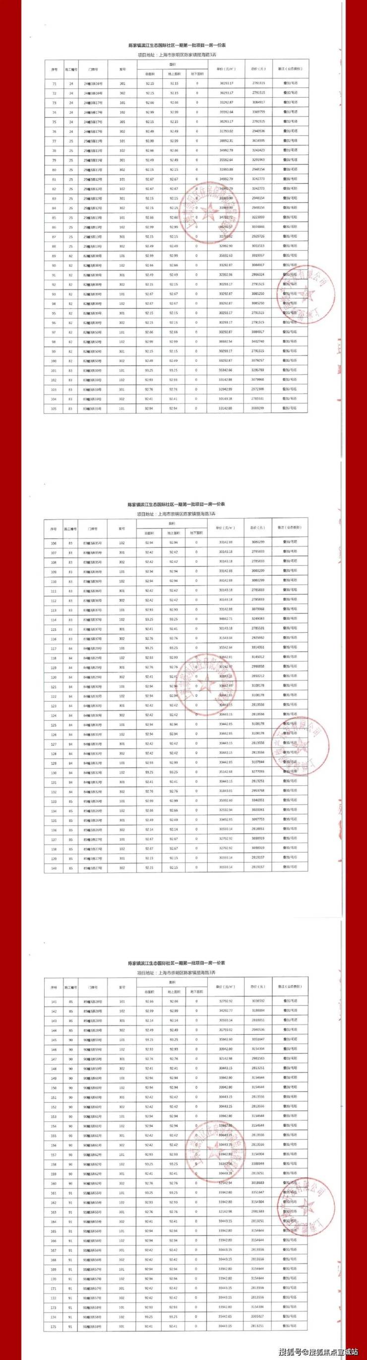 一房一价表公示: