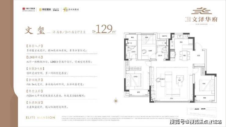 沐光洋房建面约129㎡6.2米IMAX宽厅,+1多功能空间总价210-260万元