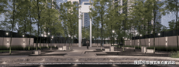 东向主打大尺度尊崇感,作为车行人行主入口,五重归家礼仪迎接业主回家:“植物园画框”式入口门头,长约67米、高约6米,迈入大门的一瞬间,犹如走进画中。