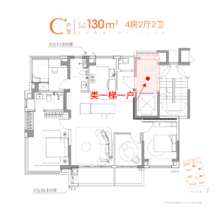·建面约130㎡4/2/2,越级尺度碾压同级