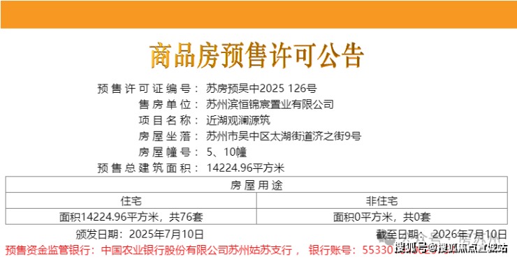 2025年7月10日,项目第三批房源领证,共76套,位于5、10号楼,货值4.9亿。