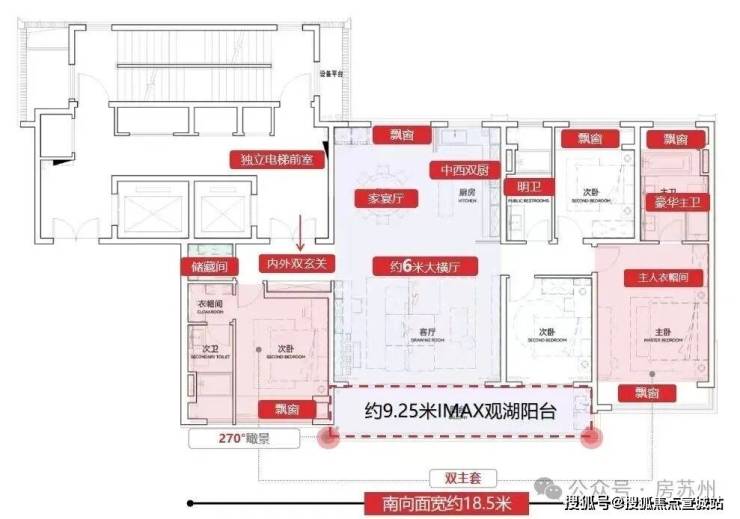 ③奢适丨全宽厅,每个房间都赠送飘窗,景观阳台最小约7.8米,得房率甚至比普通洋房高。