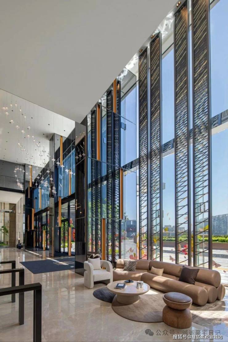 公区设计:有逐光花园、共享空间等功能性区域,打造集交友、会客、休憩、工作、运动于一体的社群空间。约 9 米超高挑空大堂,配备艺术作品,营造酒店级尊贵感受。