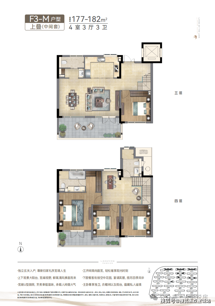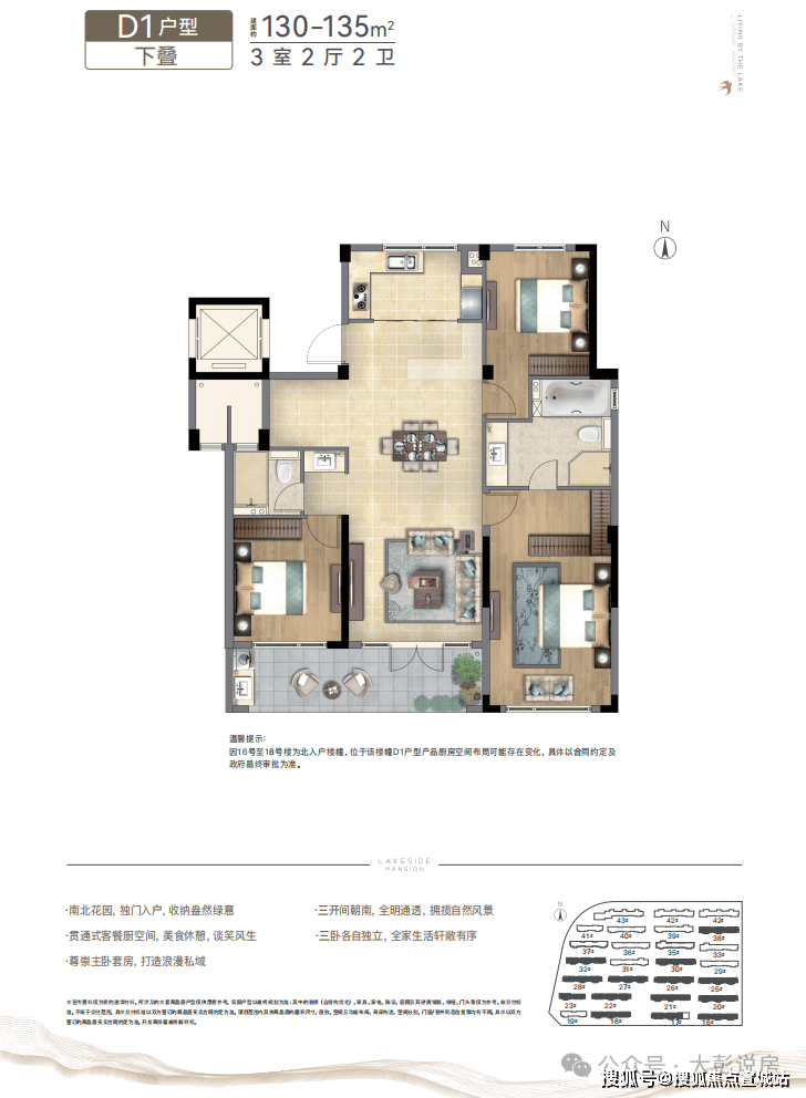 将新亚洲元素植入现代建筑语系,坡屋顶、深挑檐中式元素,采用大面蓝灰色LOW-E玻璃,大面宽、大开间、全明通透的湖景洋房,以“中央空调+新风系统+地暖”全系精装交付,诠释洋房生活的格调。