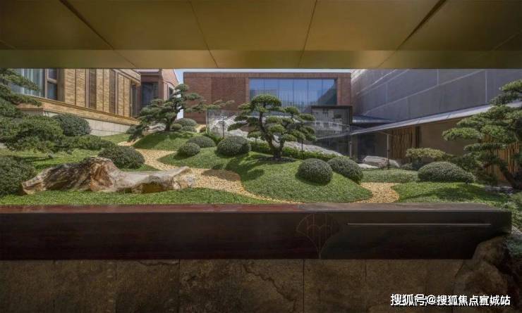 越秀外滩樾的公区庭院非常精致,其精心打造充满禅意的山水庭院。