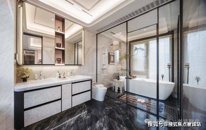 保利西郊和煦售楼处电话: 400-885-1337卫生间浴室配备品质4件套,同时置物架/镜柜/去水槽等匠心设计,也将卫浴间的精致拉满。