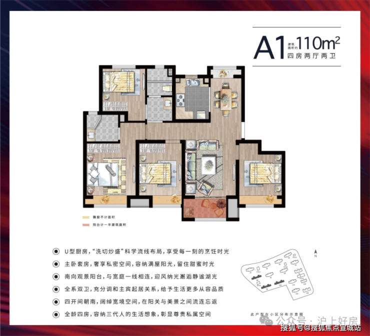 这套建面略大的四房产品,更为适合于三代同堂的家庭居住。