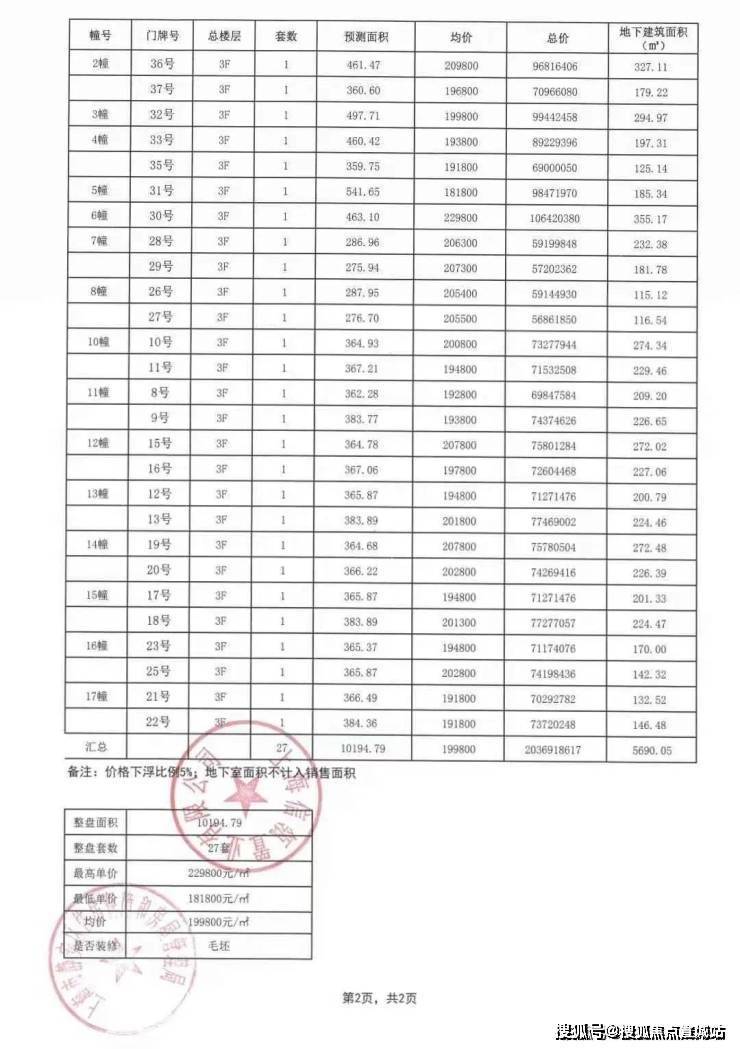 一房一价表独家首发: