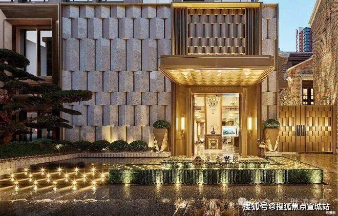 在整个社区的门户位置,保利永兴里采取了定制酒店式落客区、入口,参考了华尔道夫与安缦酒店的设计理念,一步一景,如同高定秀场。