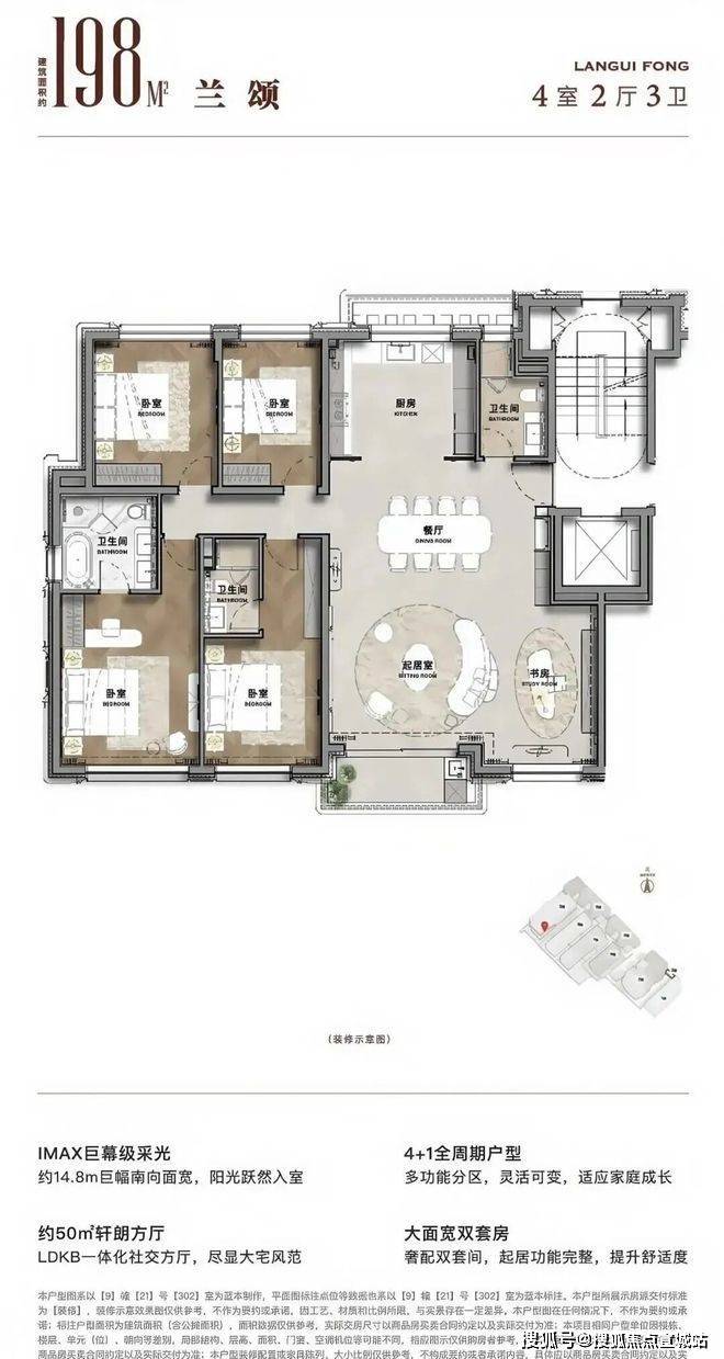 4+1全周期成长性户型,使家庭成员既可以共享社交空间,又拥有充足的私密领域,满足现代家庭多样化以及多代同堂生活需求。