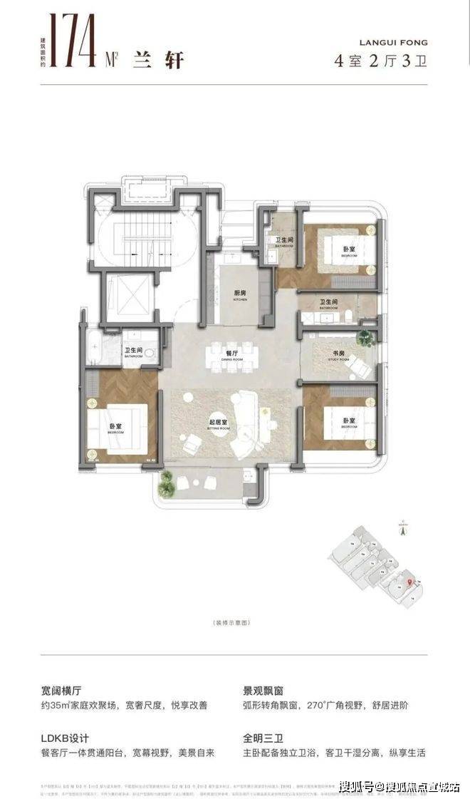 超大尺度的客餐厅,全明厨房,通过巧妙的布局,将居住、生活、社交等功能完美融合;