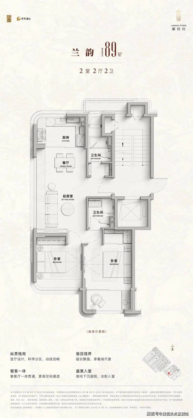 兰颂户型整体采用动静分离的格局,户型方正、南北通透,南向整体约14.8米超大面宽,赋予业主尊崇舒适居家体验;