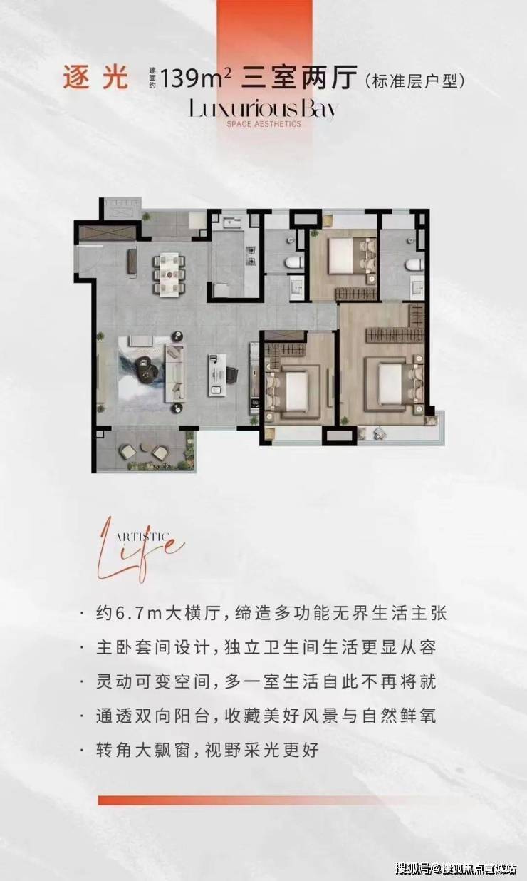 建面约139㎡3房2厅2卫