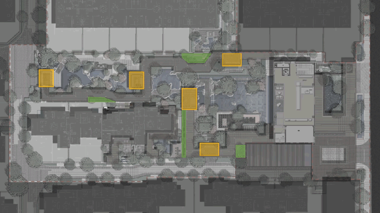 漫步于光影交织的幽静庭院,您将踏入一方充满诗意的天地。潺潺流水映照着婆娑树影,挺拔树姿为这片空间注入向上的生机,纵向延伸出无限的视觉张力。这座下沉庭院,不仅拉近了建筑与自然的情感共鸣,更使室内与景观紧密相连、和谐相融。每一扇窗户,都犹如框中的一幅生动山水画。