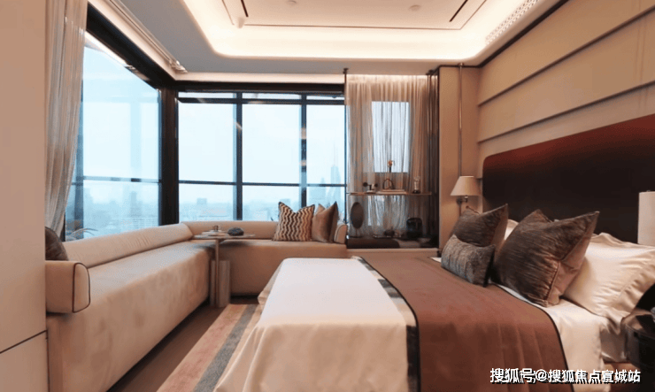 项目在保证立面美学的情况之下,最大程度打开窗景,让一扇窗即可收藏一个世界,近景可见瑰丽、璞丽、宝格丽国际奢华酒店璀璨盛景,远景可瞥见陆家嘴三件套建筑群勾勒的至美天际线。