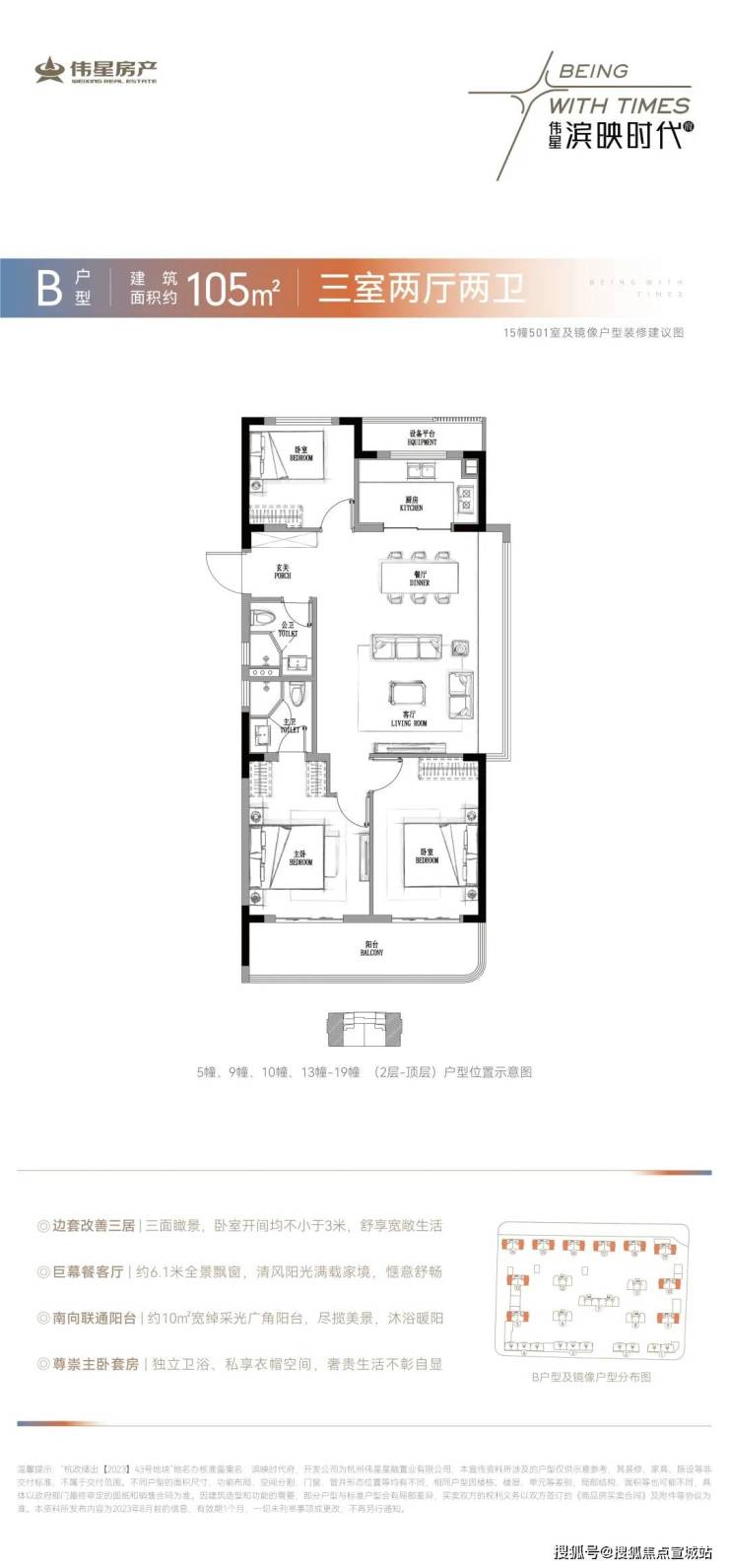 纯粹、走心,这是伟星第三子献给杭州的诚意之礼。深度挖掘市场真实需求,融入行业先行者的思索与远见,自我修炼,精益求精,赋予产品长久的生命力。以伟星式的精进步伐,不断为城市带来更有质感和温度的人居作品,这是滨映时代府一经面世便已万众瞩目的重要原因。