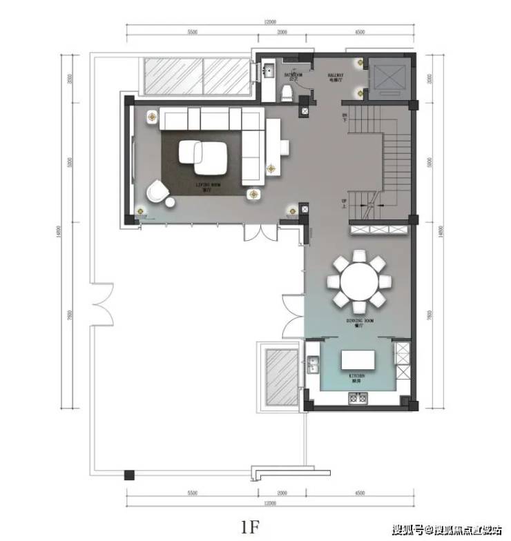 一层生活区围绕着客厅和餐厨功能打造。直面(建筑面积约91㎡)花园的整扇落地折叠玻璃窗,可自由打开,自在进出,达到与自然零阻隔。夏日乘凉喝茶,秋日围炉夜话,其乐融融。