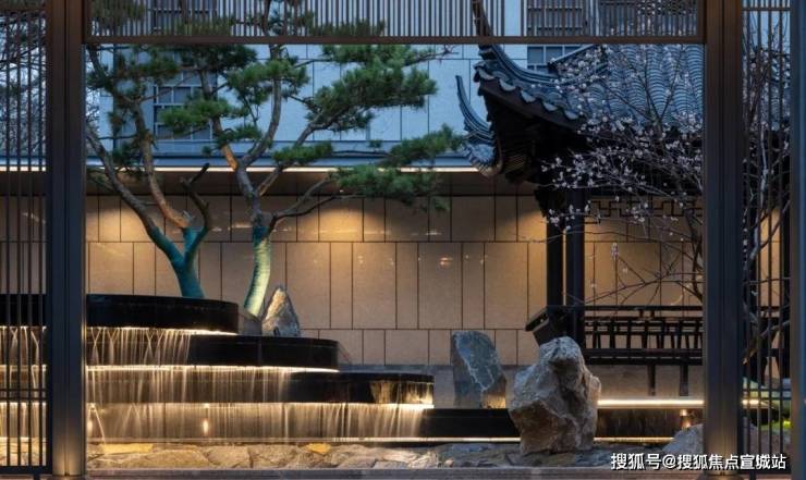 天朗气清时,水墨色与美国白金石的金绿辉映,交织出一种奢华但又深邃的沉静感。保证绝对的隐私性和生活品味。台阶、格栏、水系、亭台、树柏,层层递进,涵雲軒在追求美学的同时,做出了真正意义上的“隐奢”入口。外界无法一眼窥尽全貌,更添高门大户之神秘感。