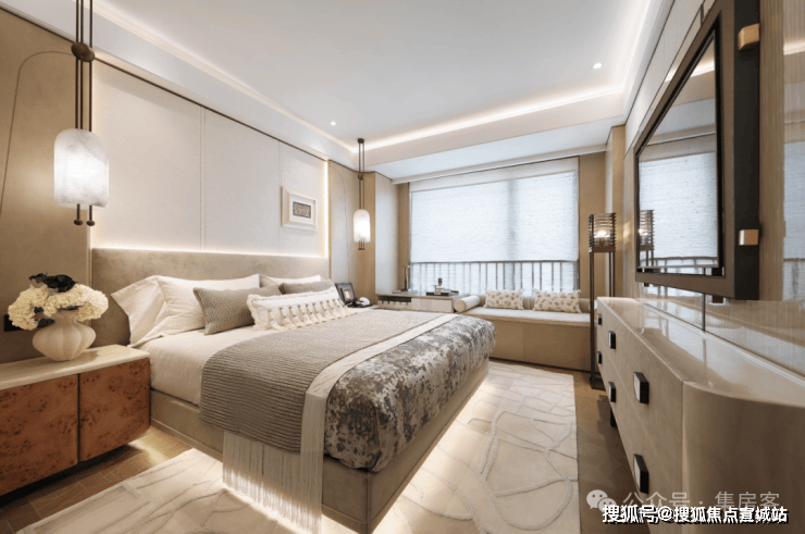 在春来晴翠园建面约169㎡晴翠户型中,最亮眼的设计显而易见——主卧90°转角窗,揽获270°环幕视野,将天光云影尽纳室内。不仅引入绝佳采光与风景,更成为一处心灵栖所。