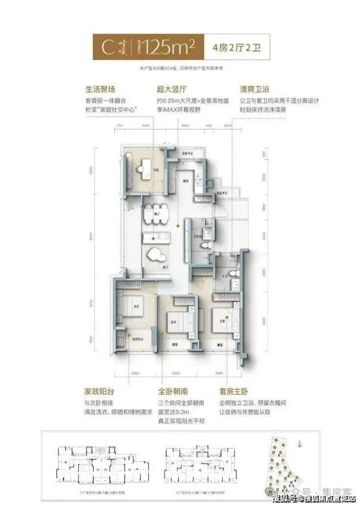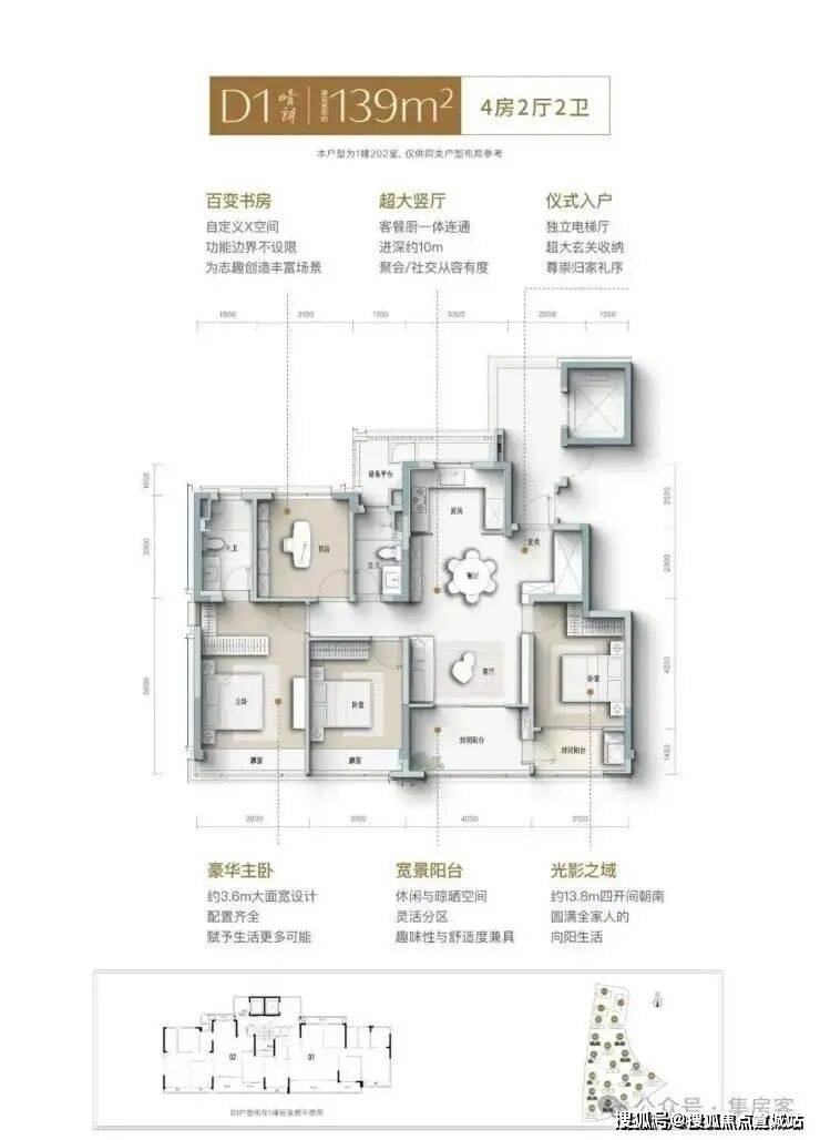 建面约139㎡南向四开间,引阳光肆意倾洒,LDK一体化宽厅,打破空间隔阂,成为家人互动、朋友欢聚的核心场域,餐厨开放式设计,让烹饪不再孤单,自定义X空间,实现“不为人生设限”,次卧家政阳台,兼顾实用与观景,约3.6米奢阔主卧,妥帖安放身心,精细化收纳,生活井然有序......