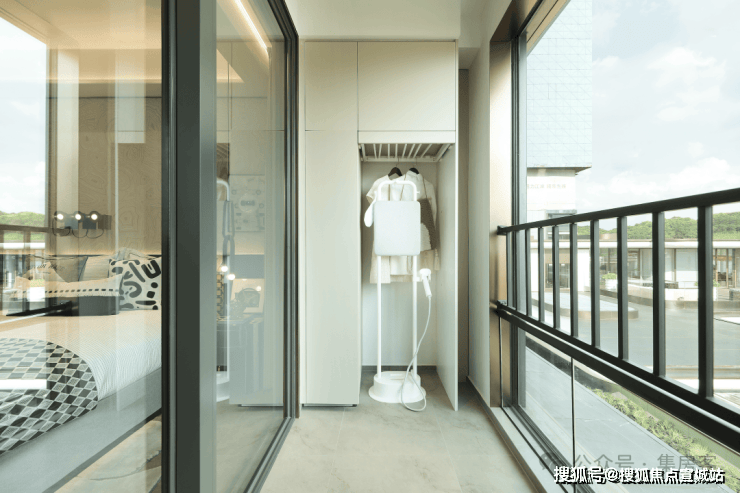 公建化的立面,四面铝板搭配大面积玻璃,阳台统一封包,底层的浅色天然石材还被打磨出弧线,脱去厚重外壳,轻盈洒脱。项目西侧直线约800米就是钱塘江,春来晴翠也在园区里编织了一幅山水画卷。