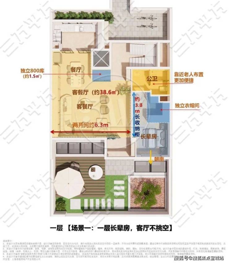 【场景一:一层长辈房,客厅不挑空】面向多代共居家庭的一层空间布局方案