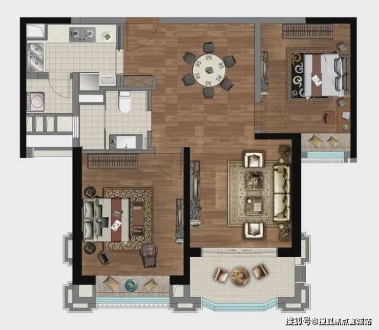 建面约95㎡2房,创新户型,全明设计。在一体化设计的客餐厨阳台中,一家人平时聚在其中,无论是坐在沙发上歇息、在厨房中烹饪、在饭桌上吃饭,窗外的风景都是生活的点缀。