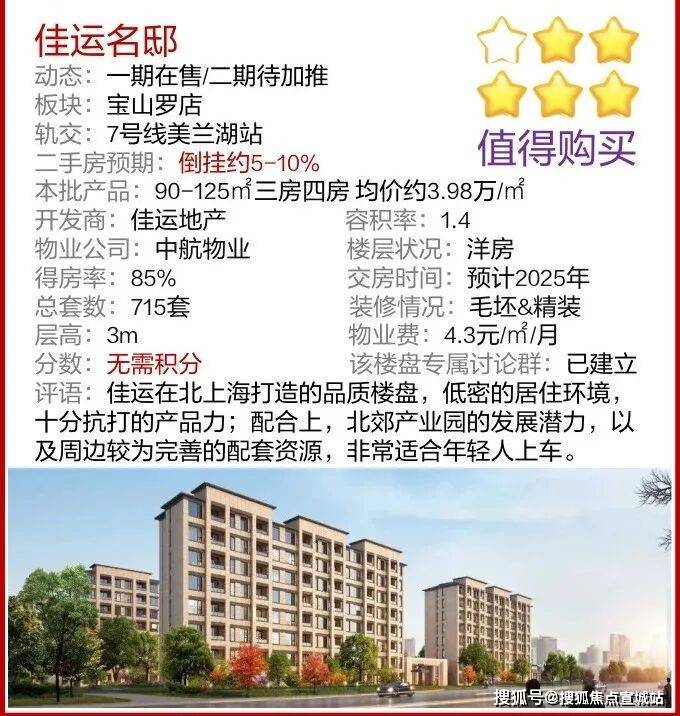 最新消息:宝山罗店全新盘「佳运名邸」低密墅式社区推出建面约90-125㎡三房四房,均价3.98万/㎡!正在热销中!