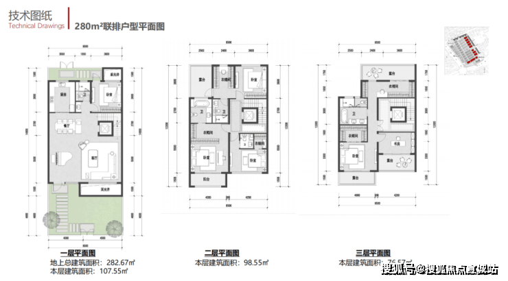 物业类型应该都是联排,面积为240-280-320-360-420㎡。