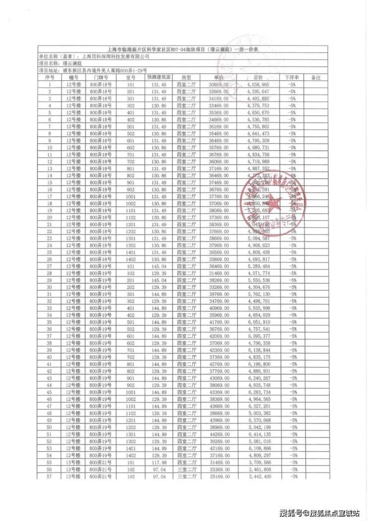 一房一价表