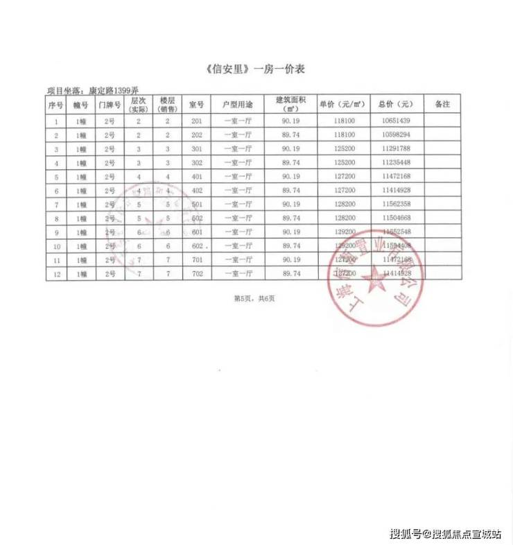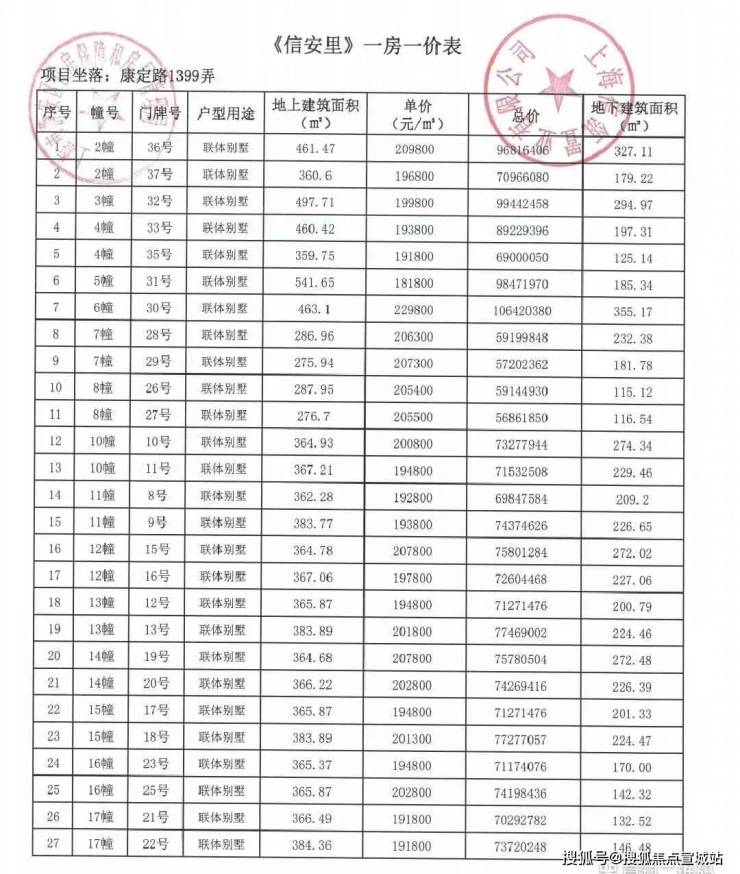 别墅一房一价表: