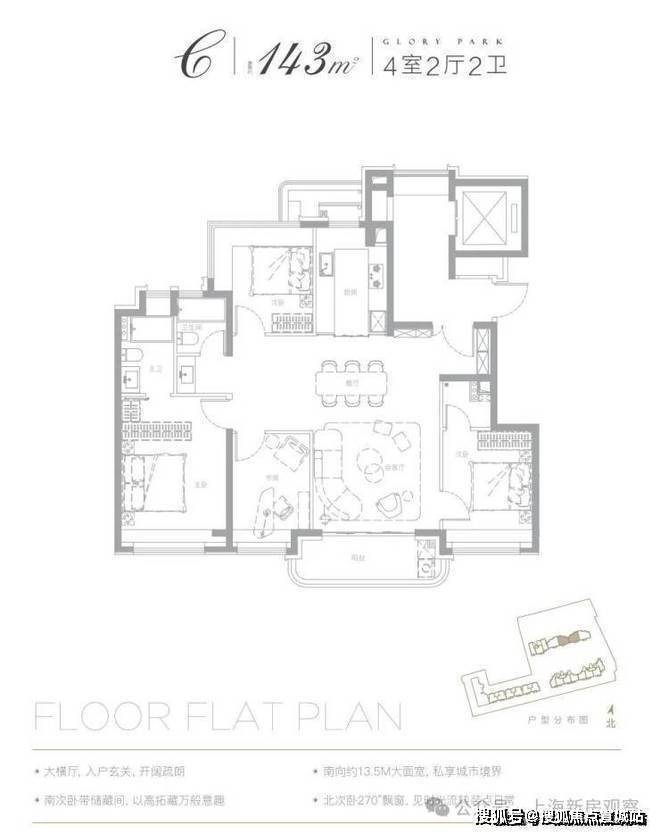 建面约143㎡4房样板间如下