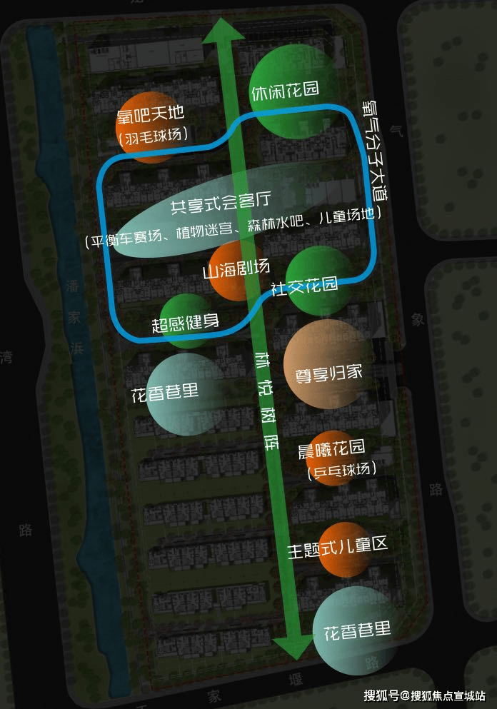 △规划空间 | 约400M慢跑环,健康愉悦;无界林气剧场,步步入境;环绕式景观会客厅,宜居谧境;主题式全龄活动场,玩乐随心;活力氧气分子跑道,尽情奔跑;入户归家空间,礼序敬呈;9 个主题社交花园,缤纷舒适;多功能阳光草坪,休闲美好