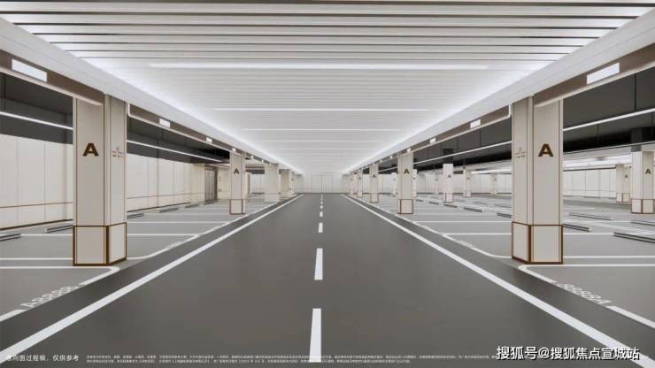 海派美学车库塑造高品质、人性化地库,顶面融汇铝格栅、定制线条灯带,营造驾车归家的高级仪式感。